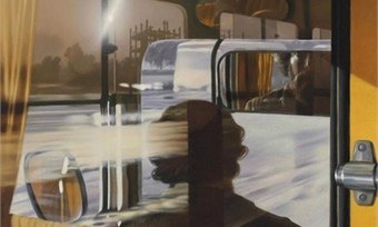 А здесь автопортрет художника. Его первый сын хотел, чтобы отец был водителем. «Движение», 1983. Благодаря отражению и бликам, кажется будто само пространство преломляется, что создает какой-то фантастический эффект.