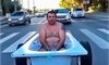 Весельчак проехал по тюменским пробкам в ванной с пеной Кто-то кричал ему: «Дядя, ты красавчик!», а вот сотрудники дорожной инспекции не заулыбались